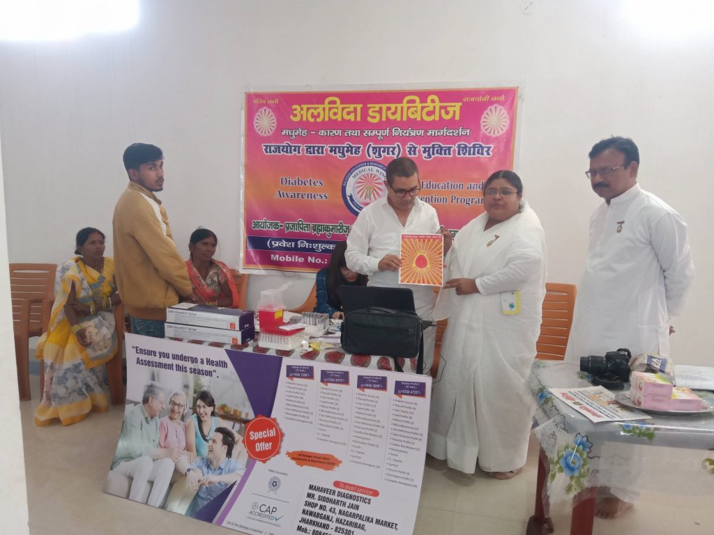 झारखंड के हजारीबाग सेवा केंद्र पर दीपावली महोत्सव में लगाए गए चैतन्य झांकी का उद्घाटन करते हुए तथा दीप प्रज्वलित करते हुए । बैंक ऑफ इंडिया के मुख्य शाखा के महाप्रबंधक श्रीमती पूनम जी, बैंक ऑफ इंडिया के रामनगर ब्रांच के प्रबंधक अभय कुमार गुप्ता जी, स्टेट बैंक ऑफ इंडिया के एरिया ऑफिसर अनिमेष कुमार दत्ता जी, बैंक ऑफ बड़ौदा के खजांची मंजू सिन्हा जी साथ में सेवा केंद्र संचालिका ब्रह्माकुमारी हर्षा दीदी तथा देवांगना सेवाकेन्द्र संचालिका तृप्ति  बहन।